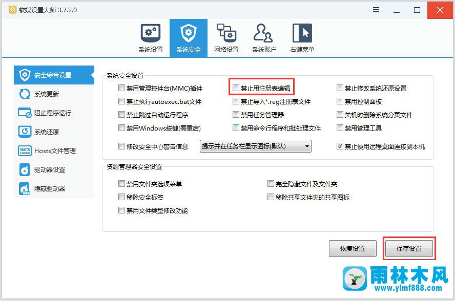 3、取消禁止用注册表编辑的勾选,保存设置即可